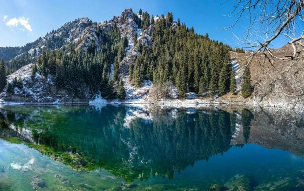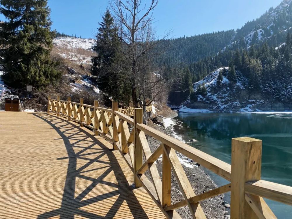 春季的潜龙渊步道,冰雪与花草交织。属于春天的勃勃生机里,蕴含着冬日还未消尽的清凉。当天池蓝遇上天山白,再加上一片清新绿,新疆的春天它不是不在,只是你没找对地方。