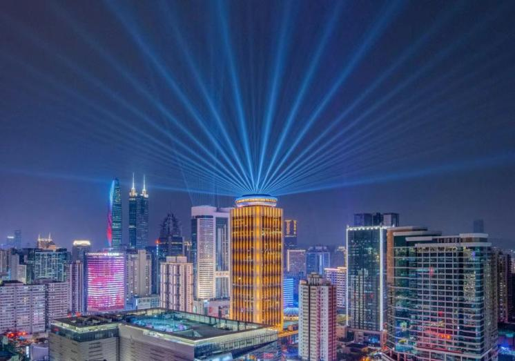 深圳地王大厦是深圳特区20世纪90年代中期耸立起来的一座重要标志性建筑。登上顶层69楼,往南可以眺望香港,向北可以俯瞰深圳。地王观光又称深港之窗,是主题性高层观光旅游景点。伴着悠扬的乐曲乘上电梯,只需五十秒,便可到达地王大厦最顶层,大厦内有新奇刺激的多维动感电影、纪实性的数码叠化幻灯投影纪录片及十五个趣味景观。站在三百多米的高空之上俯瞰,蜿蜒的深圳河仿佛巨龙展身静待腾飞,又像墨绿色的华丽绸带把深圳与香港紧密相系。
