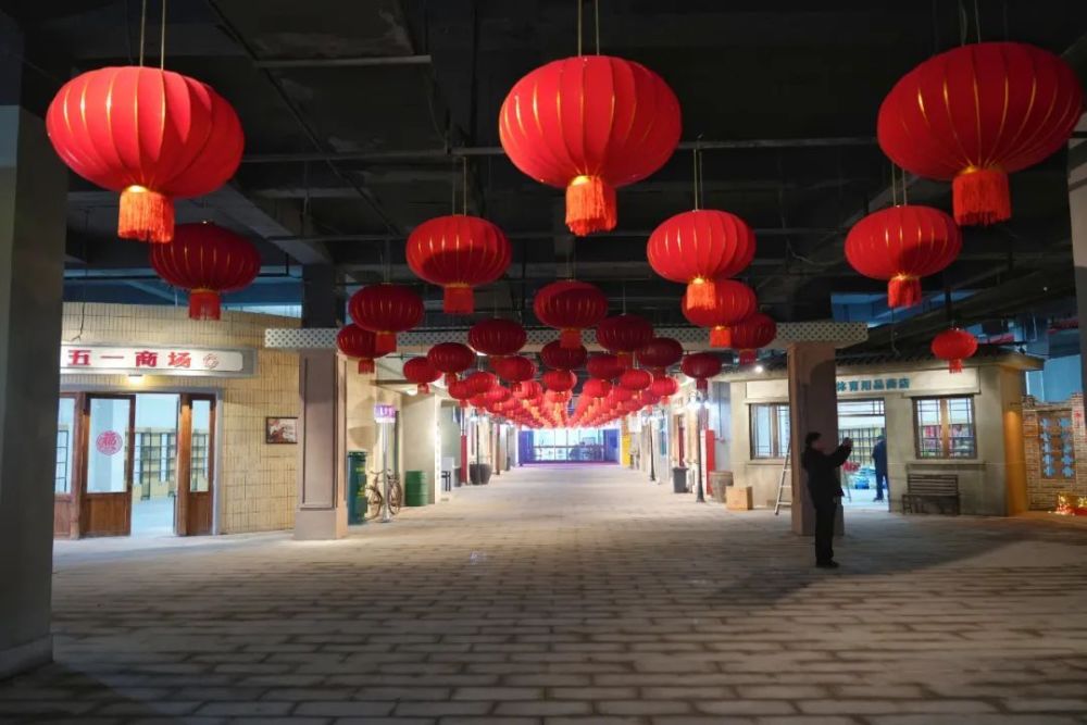 整个街区上方都挂满了火红的灯笼,街区两侧设置的怀旧路灯上垂下一串串耀眼的鞭炮,所有商铺的玻璃上都贴上了充满新年元素的窗花和“福”字,从透亮的玻璃窗向里望去,所有的商铺内都正在紧锣密鼓地进行着展品上架工作,到处一片喜庆、热闹、祥和的气氛。