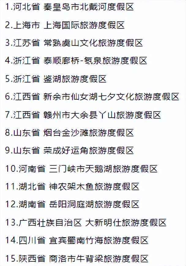 4、15家旅游度假区确定为国家级旅游度假区