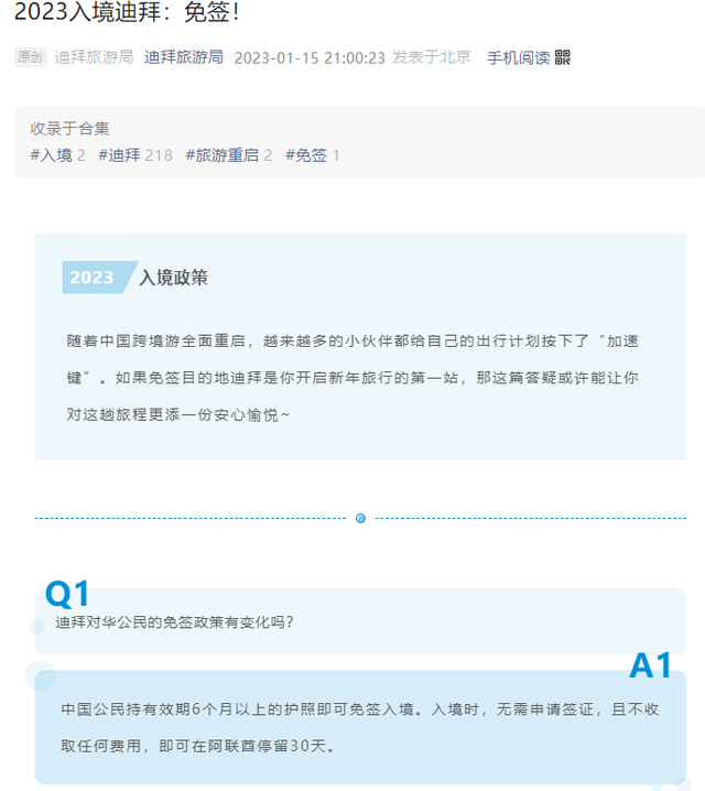 据迪拜旅游局消息,中国公民持有效期6个月以上的护照即可免签入境。入境时,无需申请签证,且不收取任何费用,即可在阿联酋停留30天。出发前或抵达后,无需提供PCR核酸检测结果,也不需要提供提供COVID-19疫苗接种证明。途经迪拜过境或是自迪拜始发前往其他目的地的旅客,只需遵守最终目的地的过境要求和旅行要求即可。