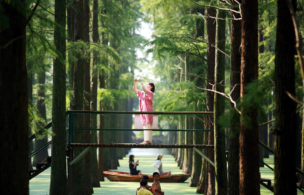 除了运河西堤风景区,高邮清水潭旅游度假区也是一处避暑胜地,这里一年四季皆景,还能看到独一无二的“野鸭放飞”。此外,市民登上高16米的东湖林中观鸟台,可见万千鹭鸟上下翻飞,蔚为壮观。