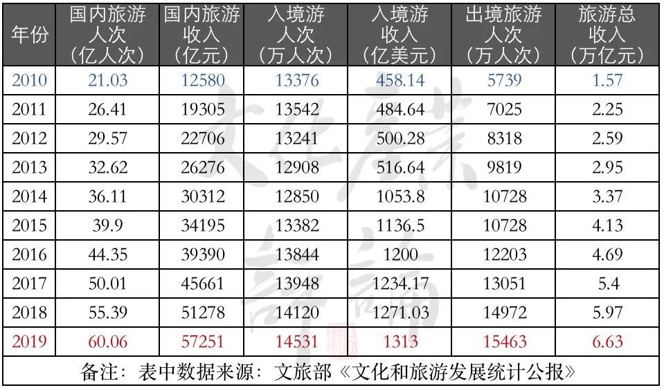 据2020年6月文旅部发布的《2019年旅游市场基本情况》显示: