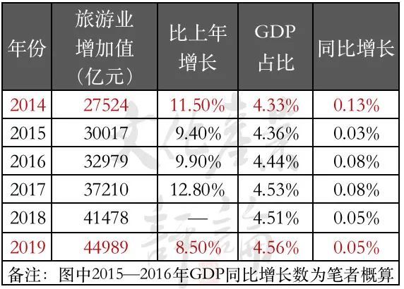 回到开篇的话题。据2020年12月31日国家统计局发布数据显示,经核算,2019年全国旅游及相关产业增加值为44989亿元,占国内生产总值(GDP)的比重为4.56%,比上年提高0.05个百分点。