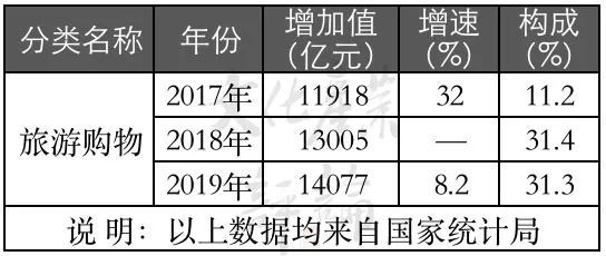 对比2017年至2019年旅游购物相关数据,由此不难判断,当下游客出游除光观和休闲度假外,更加在意旅游品质、特色和个性化,其中旅游购物型支出成为大头。从近3年旅游购物增加值构成占比看,分别为11.2%、31.4%、31.3%。