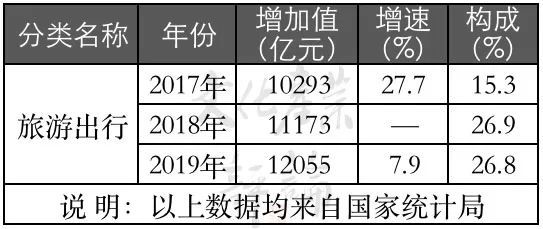 再看3年的旅游出行增加值,2017年、2018年、2019年分别10万亿、11万亿、12万亿,每年高达1万亿的增值,增加值分别占内部构成的15.3%、26.9%、26.8%。近年来,随着国家大交通网的建设加速及交通出行工具多样,以及私家车保有量增加,消费者旅行热情更加高涨。