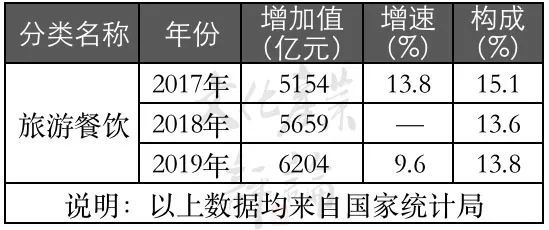 对比2017年至2019年名义数据看,旅游餐饮构成占比较高,分别为15.1%、13.6%、13.8%,数据波动不是很多。同时,也反映了近年来旅游特色餐饮业发展比较稳健。