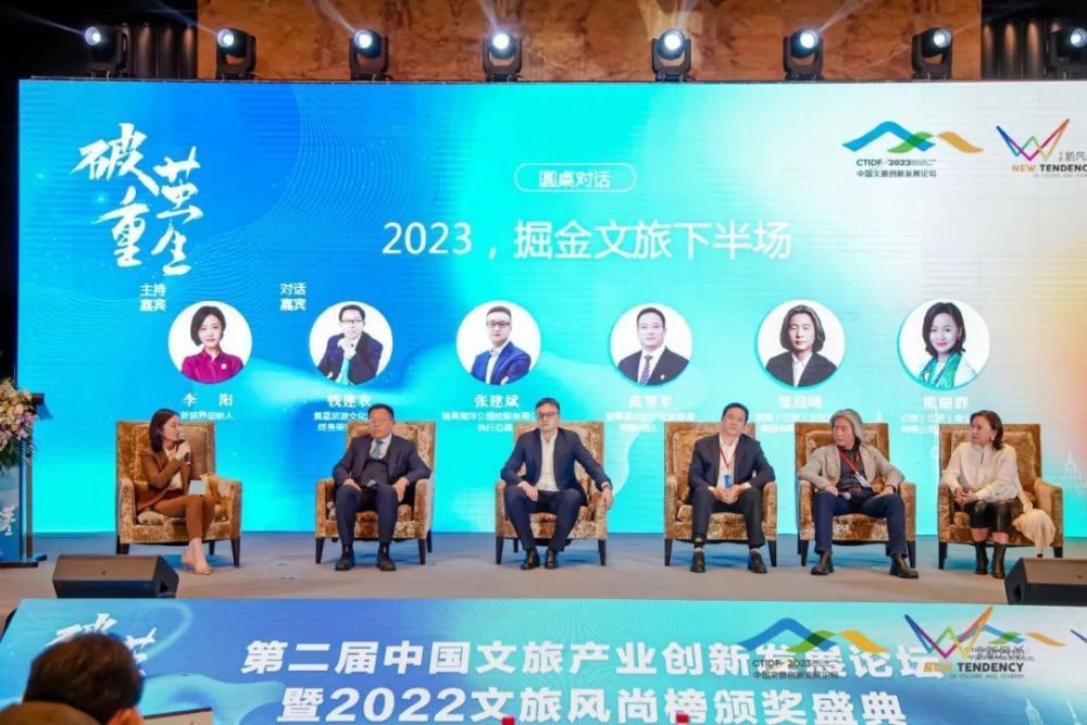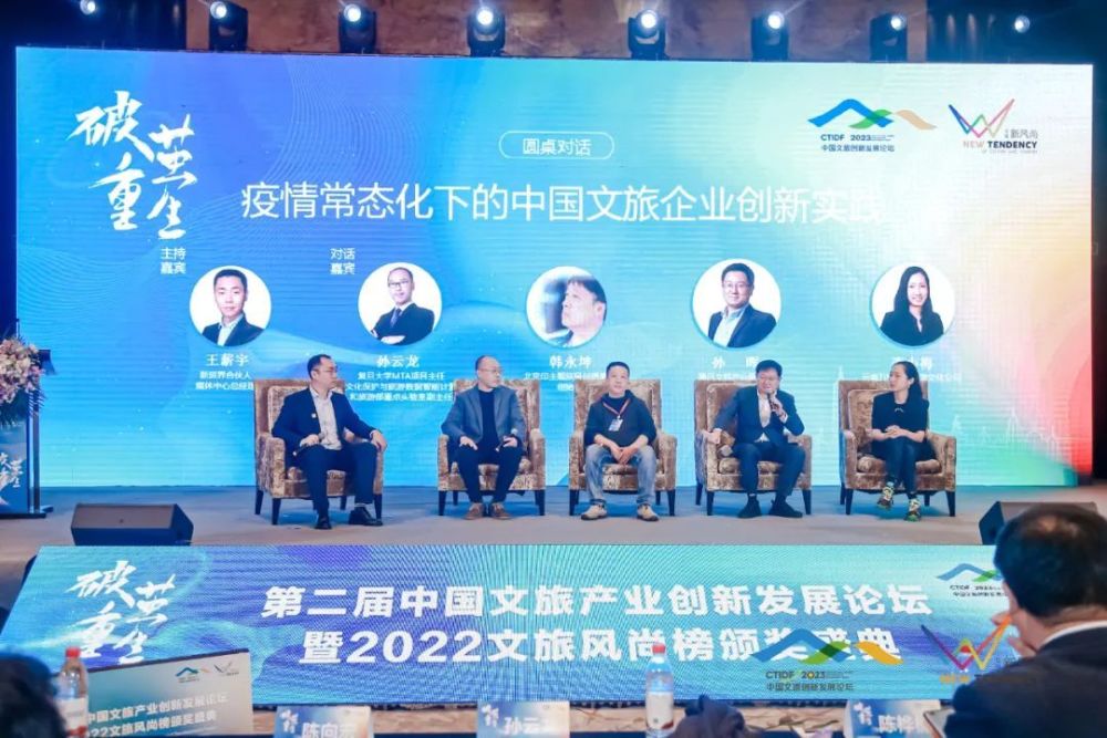 在圆桌对话环节,复星旅游文化集团终身荣誉董事长钱建农,海昌海洋公园控股有限公司执行总裁张建斌,新昌县文化广电旅游局党委书记、局长高雪军,袈蓝(北京)文化产业集团有限公司创始人邹迎晞,山地(北京)商业管理有限公司创始人、CEO熊丽群围绕“2023,掘金文旅下半场”展开精彩对话。复旦大学MTA项目主任、数字文化保护与旅游数据智能计算文化和旅游部重点实验室副主任孙云龙,腾讯文旅产业研究院秘书长孙晖,北京印主题旅居创想集团创始人韩永坤,云南万物竞萌旅游文化公司董事长李小梅等就“疫情常态化下的中国文旅企业创新实践”进行交流分享。