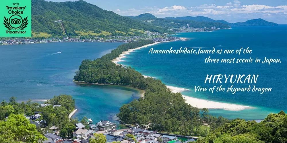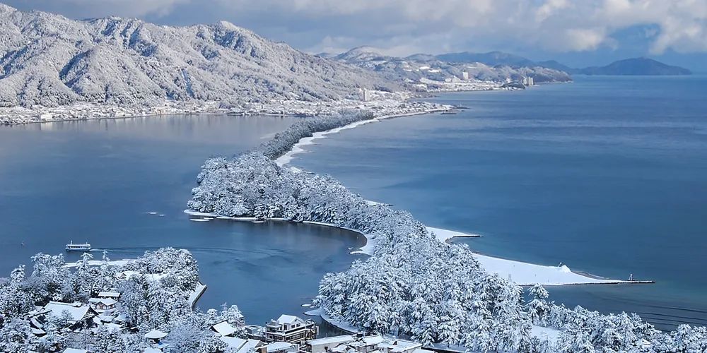经过千百年历史的淬炼,自然形成的神秘景观 「天桥立」。被海洋包围全长3.6km的沙洲上面,有约8000多棵松树。从宫津湾延伸出来仿佛切断了阿苏海的天桥立,像是从远古至今腾飞的一条龙,蜿蜒起伏。