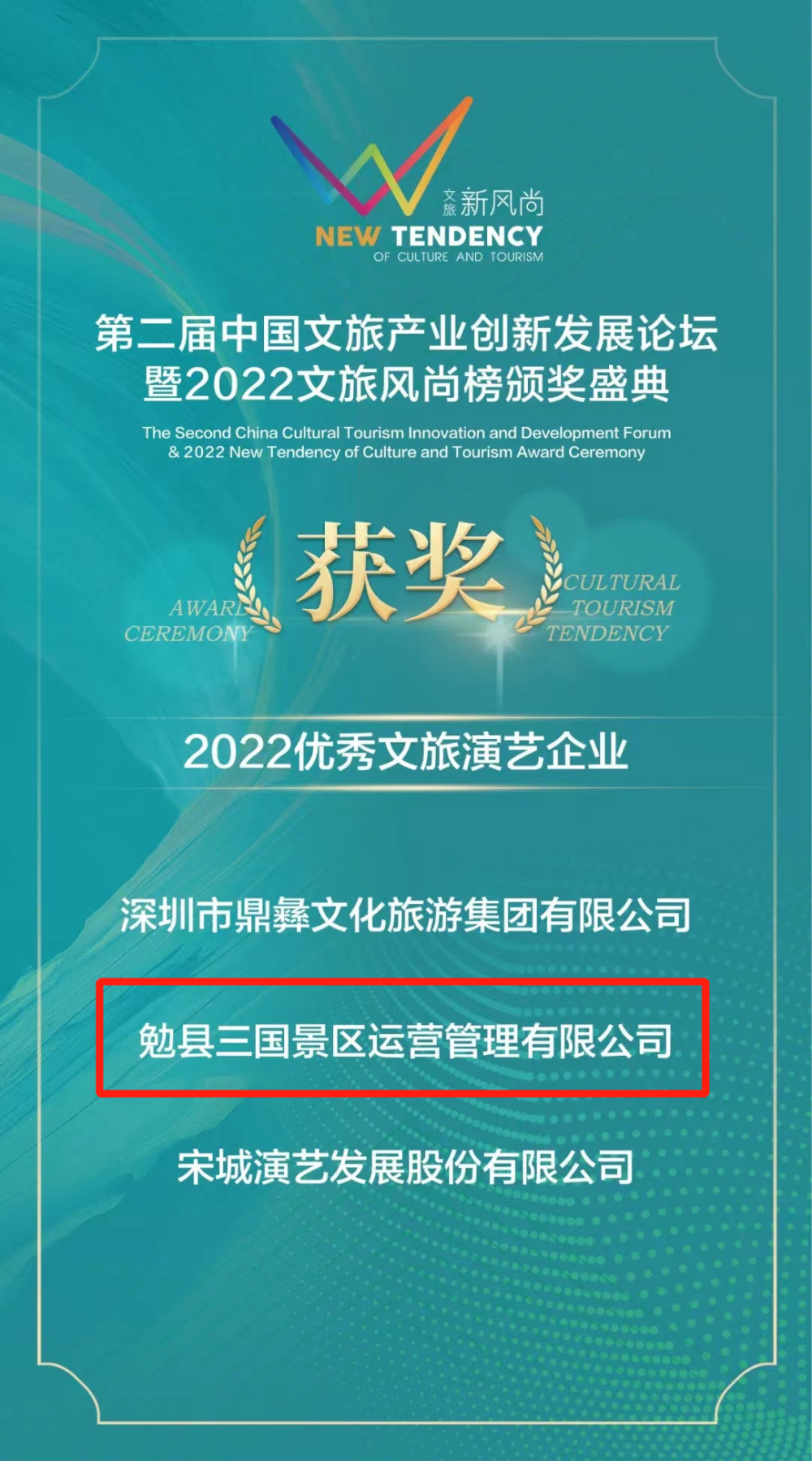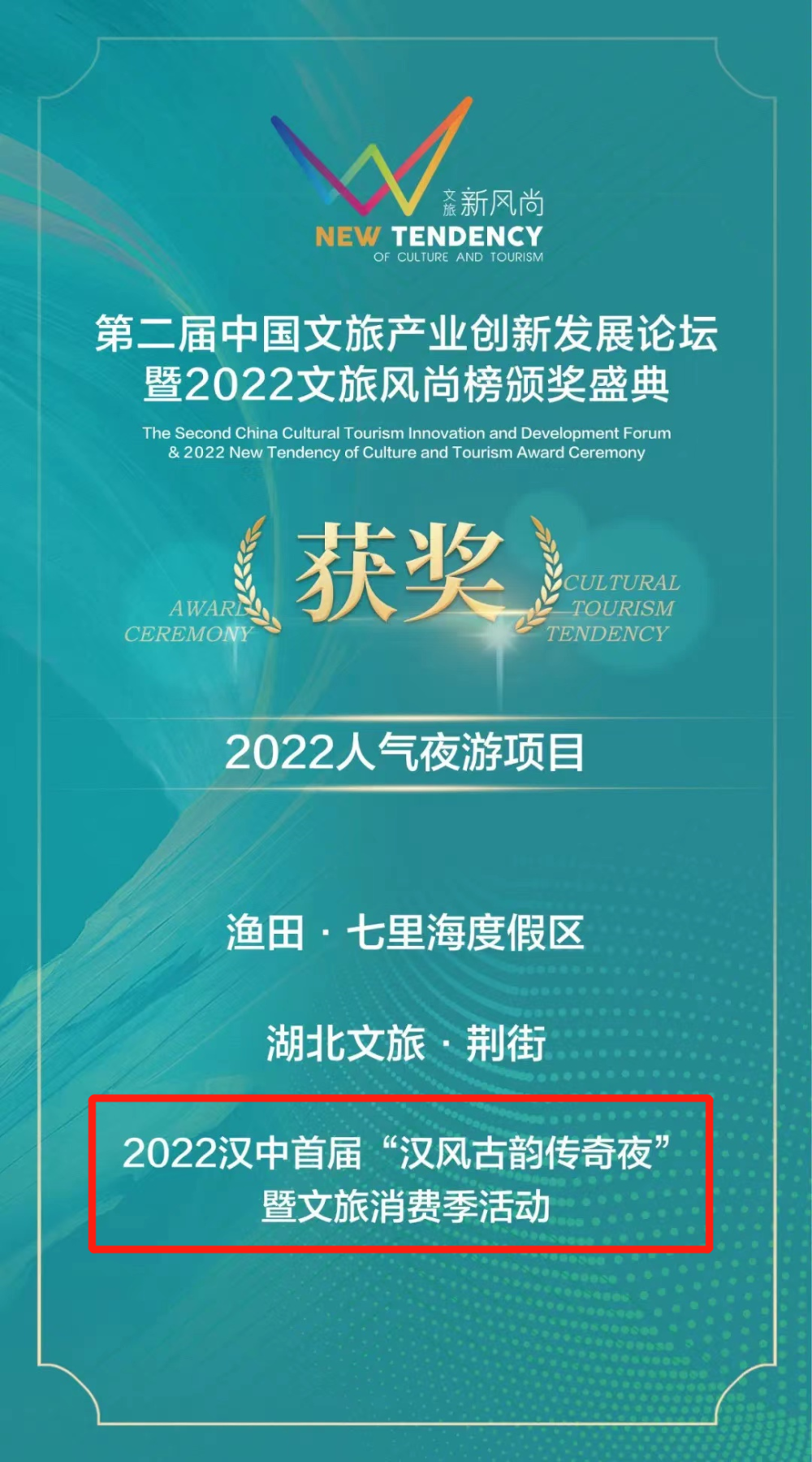 近日,第二届中国文旅产业创新发展论坛暨2022文旅风尚榜颁奖名单发布:2022汉中首届“汉风古韵传奇夜暨文旅消费季活动”荣获2022全国人气夜游项目奖,勉县三国景区运营管理有限公司荣获优秀文旅演艺企业奖。