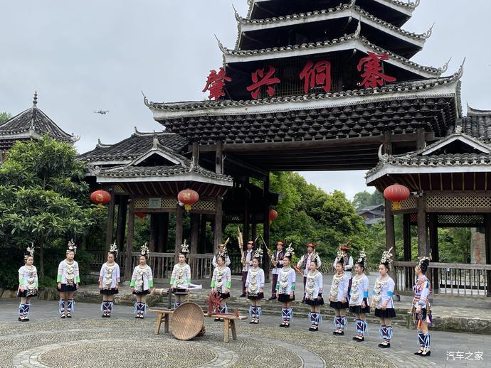 侗寨每天上午的例行欢迎歌舞,里面有一位大姐是混进去的,你发现了吗[偷笑]晚上在寨子里面的剧场有售票的侗族歌舞表演,寨子里面很多租侗族服装的价格不贵,喜欢的可以租一套穿着逛着寨子别有韵味[憨笑]