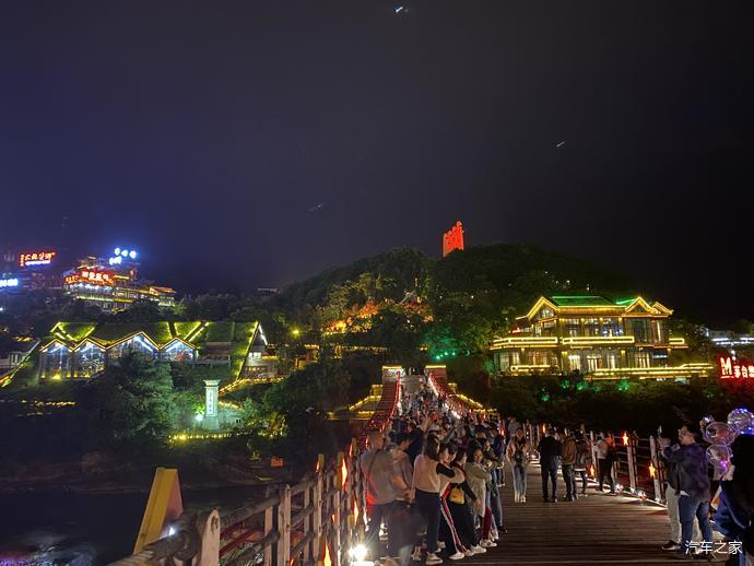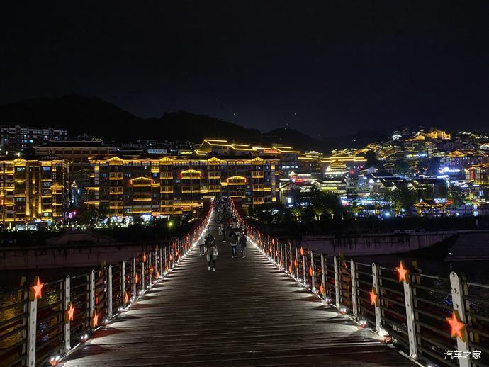 夜色下的吊桥红星闪耀!