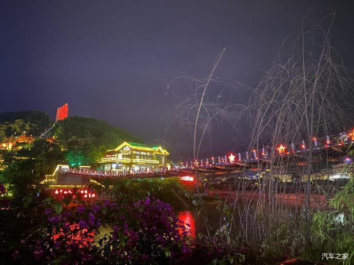 一条小河穿寨而过,寨门旁边有一个小广场每晚都有篝火歌舞表演