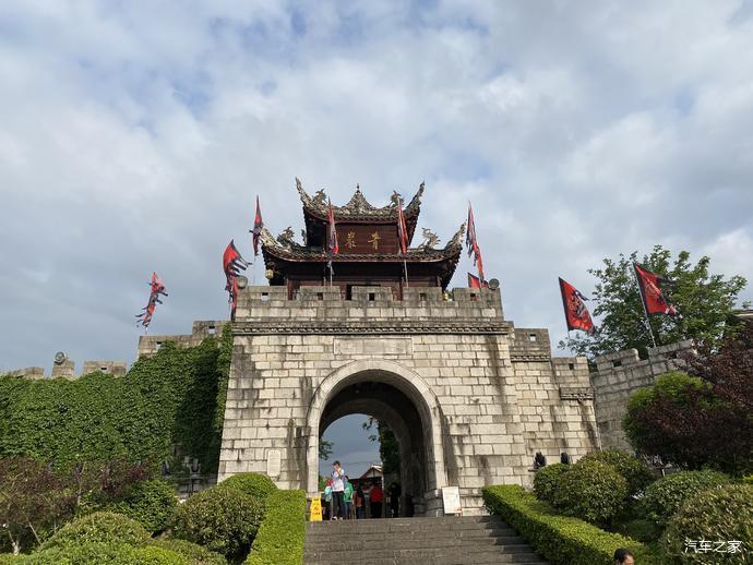 停车场旁边有台阶上到观景台,在观景台拍的寨门的全景