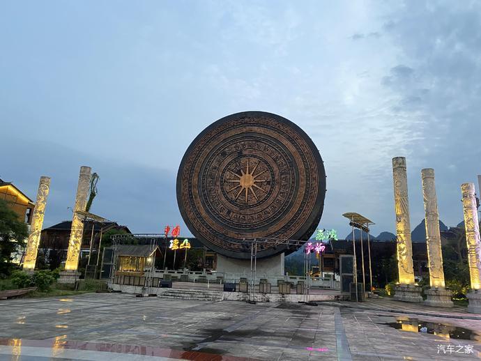 游客接待中心对面就是为原来住在景区里的移民新规划建设的-梦柳布依风情小镇,这是中心的铜鼓广场。
