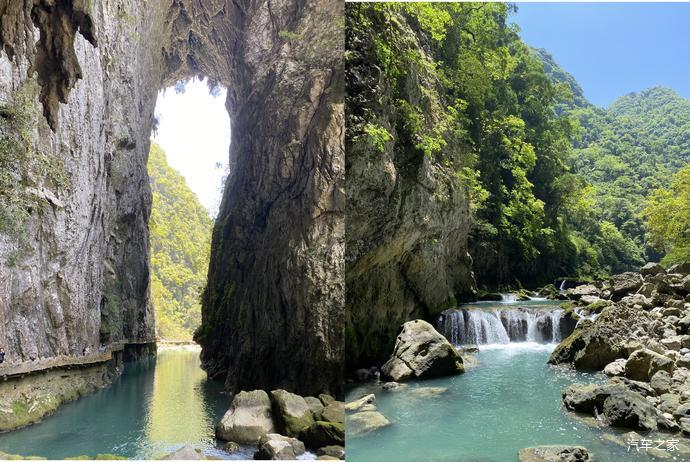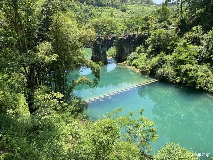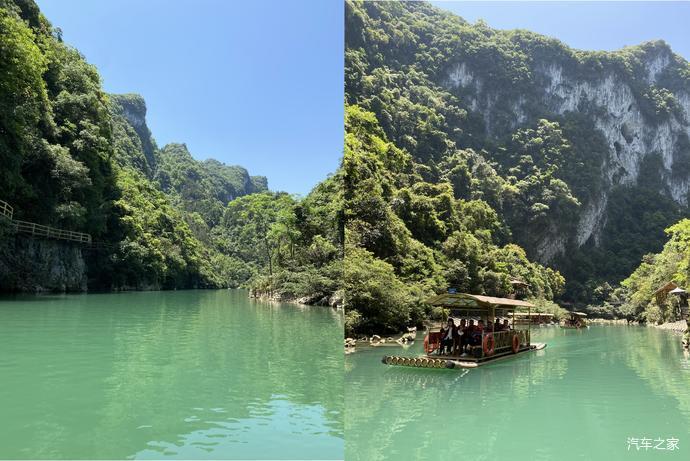 坐竹筏游览大七孔,走到里面就是天生桥