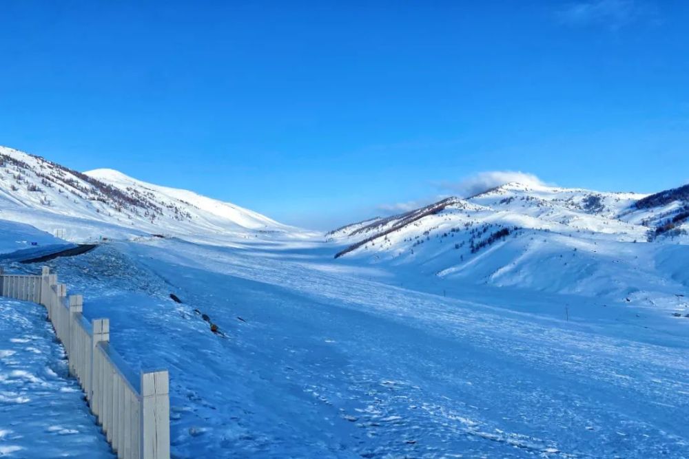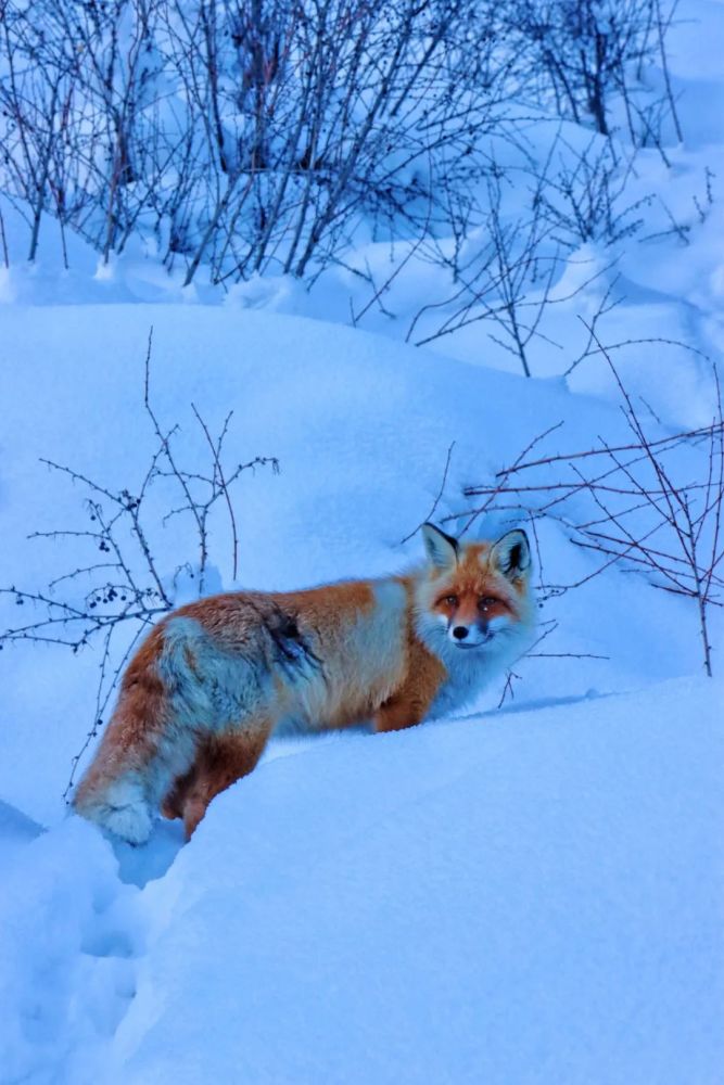 喀纳斯机场到禾木沿途风景非常辽阔壮观,千里冰封万里雪飘,白茫茫一片。途中还遇到了一只狐狸,司机说是禾木的网红狐狸,经常在那个位置等待游客喂食,不过他说最好不要喂,因为狐狸吃了不合适的食物会掉毛。