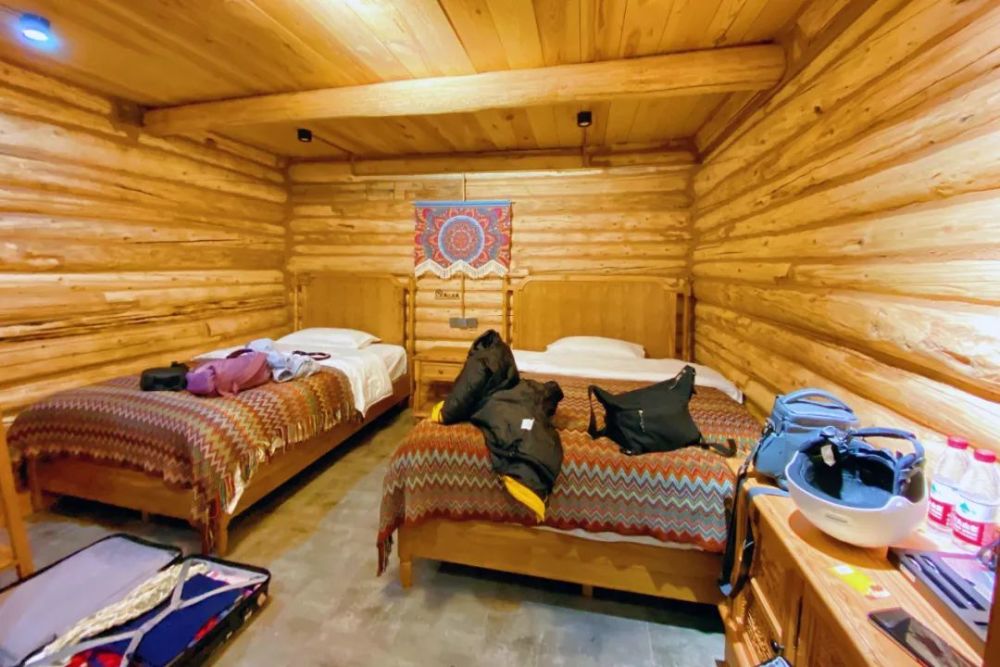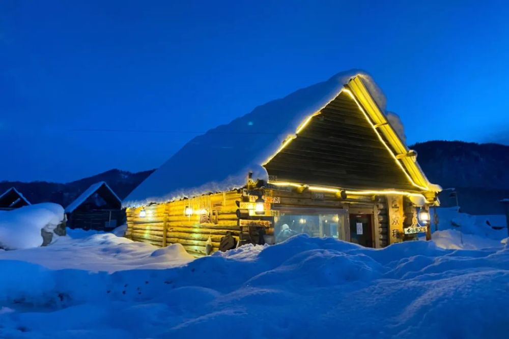 等我们到达禾木村时已是华灯初上时分,找各自的民宿又找了很长时间,因为房顶、院子、道路全都覆盖着厚厚的雪,所有房子看起来都长得差不多,又没有门牌号,等我找到我的民宿时,那位女生已经先我一步到达了。登记了身份证,查看了行程码健康码以及核酸,然后进入我的房间。