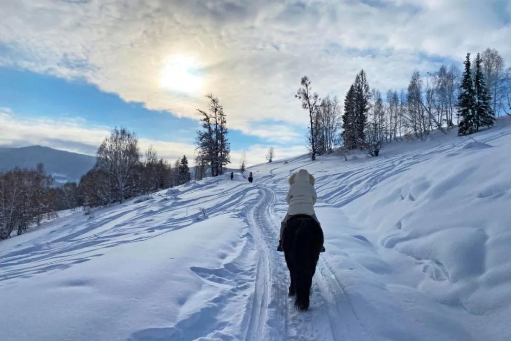 在禾木喀纳斯的7天中,我们一直是拼房拼晚餐,白天他们去滑雪,我就自己闲逛村子,爬观景,拍照片拍视频,他们没有滑雪时,我们一起拍泼水成冰,一起骑马去美丽峰,一起去喀纳斯。后来我离开了新疆,她依然待在禾木。
