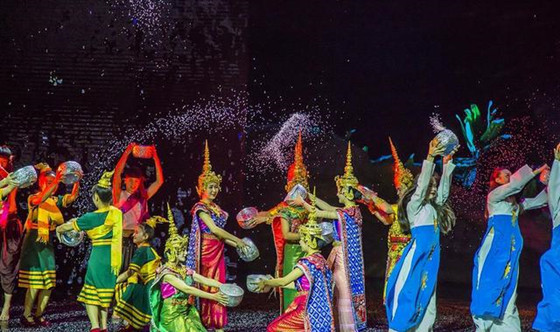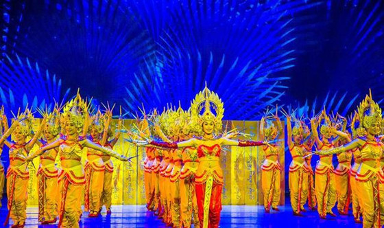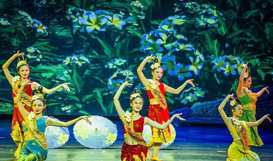 西双版纳曼听公园这场文艺演出集合了中国、老挝、缅甸、泰国、柬埔寨、越南六个澜沧江湄公河流域国度的文化特色,也包括了傣族、基诺族、布朗族、拉祜族、瑶族、哈尼族六个在西双版纳州世居少数民族的民俗风情表演。