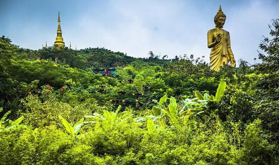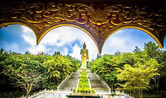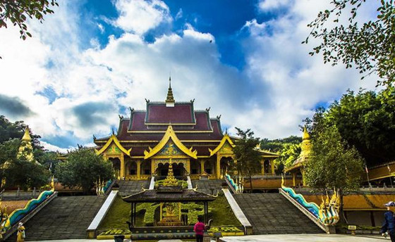 西双版纳勐泐大佛寺西双版纳的少数民族绝大多数信奉南传佛教,勐泐大佛寺在傣家人心目中有着至高无上的地位。这里是是南传佛教的一个缩影,这里的建筑风格充分的展现了南传佛教的建筑风格。