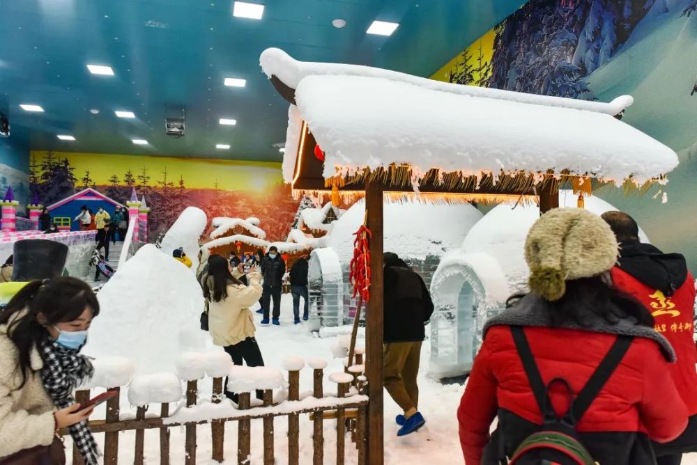 梅花小镇冰雪王国主题乐园面积约2000平方米,以冰雪为元素,打造真实的下雪场景,将北欧及哈尔滨冰雪奇观“搬”来南方,让游客随时感受冰雪王国的浪漫。