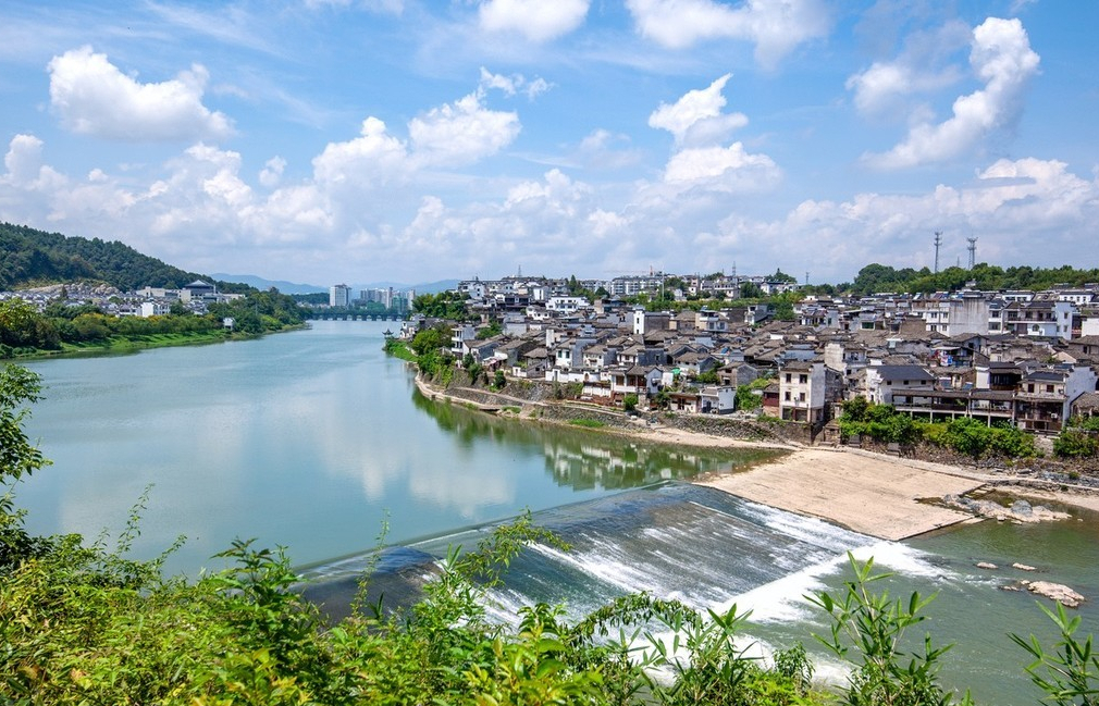 这里被称为“江南第一都江堰”,作为古代的水利工程,这里是新安江上游最古老、规模最大的古代拦河坝。沿着江畔走走,春日时分可见山坡上的油菜花,江中的古渡小舟。