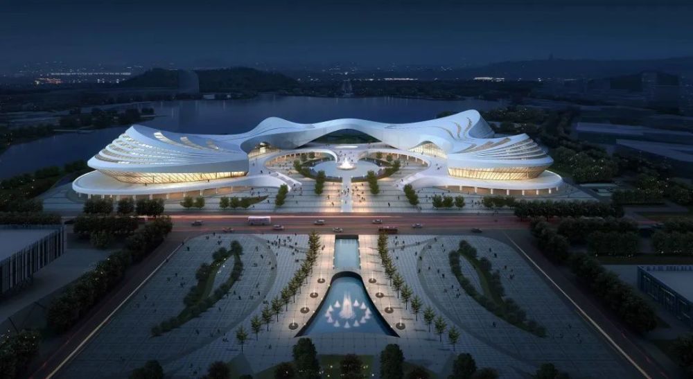 外观神似展翅飞翔的“大蝴蝶”的柳东新区文化广场