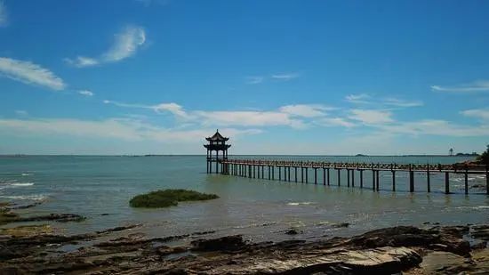 最有特色的是海面上吊养大蚝的一片片浮排,和插养在滩涂上的一块块蚝田,景象壮观。风平浪静的海湾,碧蓝的海水轻轻地摇曳着沉睡的万亩大蚝排,洁白的海鸥不时的掠过海面,生机勃勃而又充满希望。