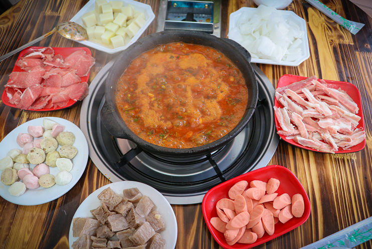 下饭神器第一名,就是安顺特色夺夺粉啦。汤底浓稠的什锦小火锅,越煮到后面越美味,全部吸满汤汁的肉沫淋一勺到米饭上面,超香!