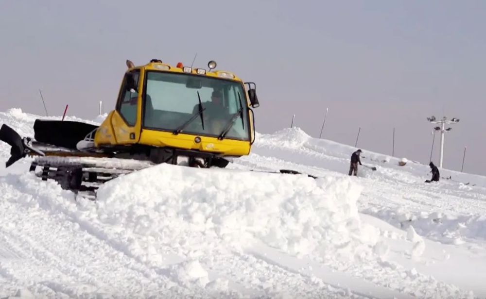 压雪机正在平整滑道。融媒体中心记者 李瀚麒摄