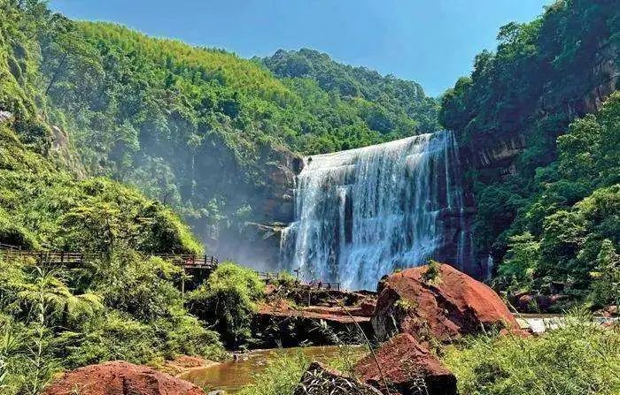 赤水丹霞景点很多,除竹海森林公园外,其余景点都有丹霞景观。赤水是世界遗产地,丹霞是世界遗产,桫椤是珍惜一级保护植物。有竹乡和千瀑美称,其中最有名的是十丈洞大瀑布(赤水大瀑布)名扬全国。