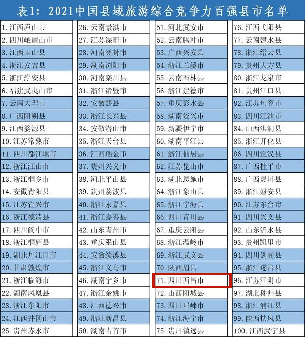 县域旅游|《2021中国县域旅游综合竞争力百强县市》发布,西昌榜上有名