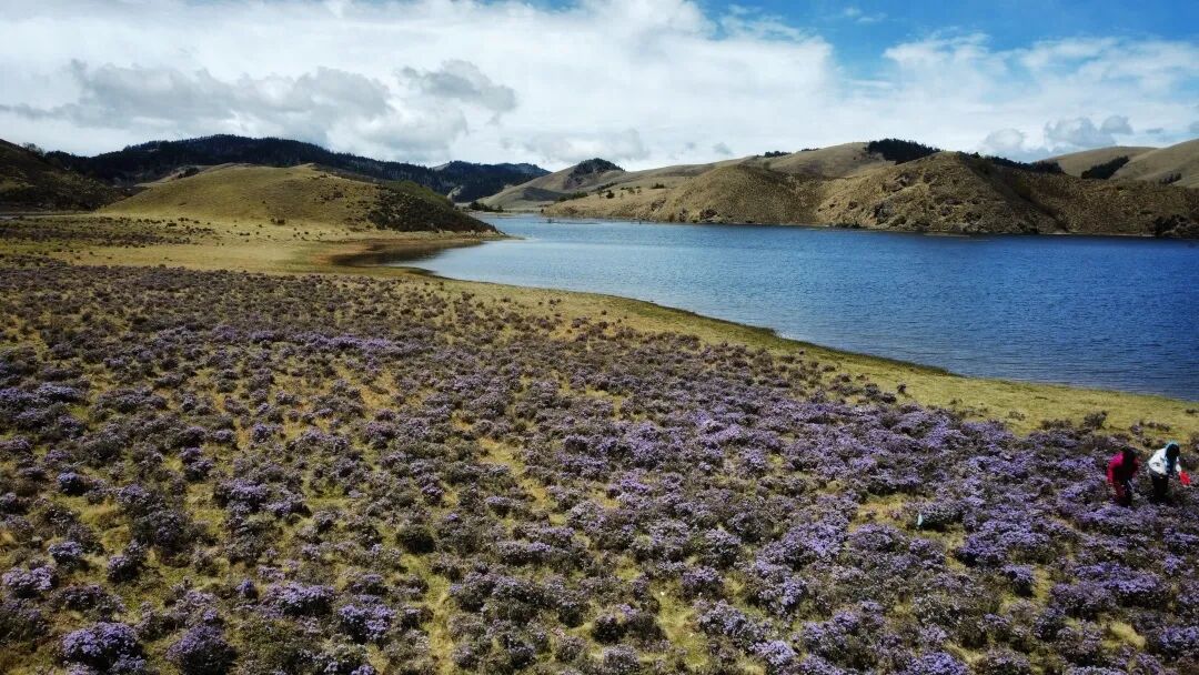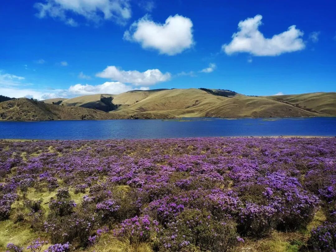 5月,正是昭觉谷克德省级湿地公园杜鹃花盛开的季节,姹紫嫣红的索玛花把整个谷克德湿地渲染得五彩斑斓。