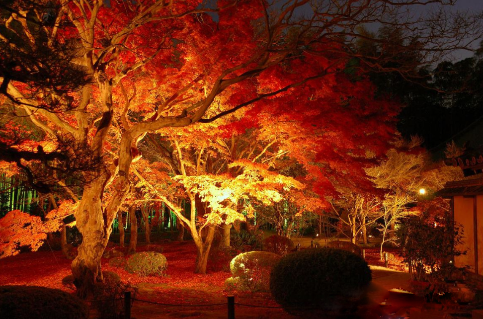 高台寺,是我感觉可以在夜间观光的京都寺庙里面最漂亮的一个。夜幕下平静的池塘,绚丽的夜光树影,漂亮的禅宗花园,忽明忽暗的竹林,是个禅意浓浓的夜晚赏秋之地。