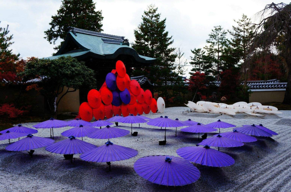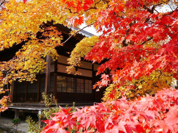 圆光寺,属于临济宗派的一座寺院,在京都大牌寺院当中相对小众化。由于寺庙所在地势比较高(接近封顶),你可以看到更多的秋景。当然圆光寺的宁静小花园,小竹林,都很有禅意。特别推荐在圆光寺的内廊下一边品尝传统甜点,一边饮茶,同时欣赏满园的秋色。