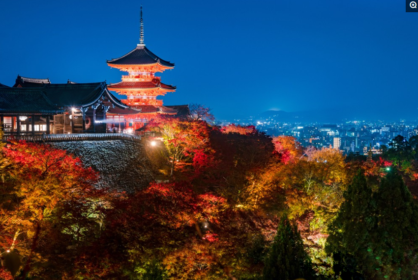 清水寺,是京都上百座寺院中我觉得颜值最高、观赏性最强的一座,无论是春天的赏樱季,还是秋天的赏枫季,它的人气指数都非常高。虽然无时无刻,清水寺的游客都很多,但我还是强烈建议你去一趟,因为它很有价值!每年从11月中旬到12月的上旬是清水寺的最佳赏秋时段。