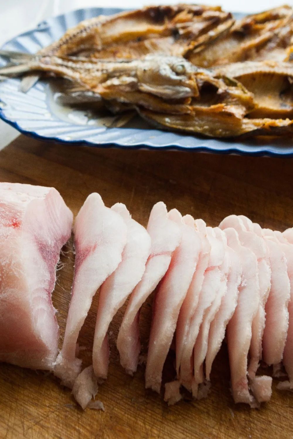 还有家家户户都有的晒干的明太鱼,可以直接撕成丝蘸着辣椒吃,也可以泡发后做成凉菜,也可以用来煮汤。