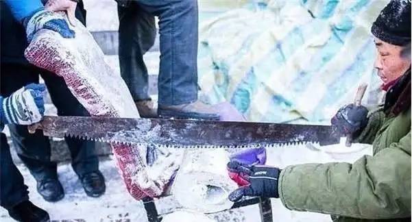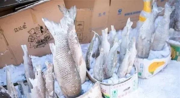 觉得鱼不新鲜?nonono!你还不了解这些鱼的“急冻”过程,从冰窟窿里捕出来,上岸就冷冻。