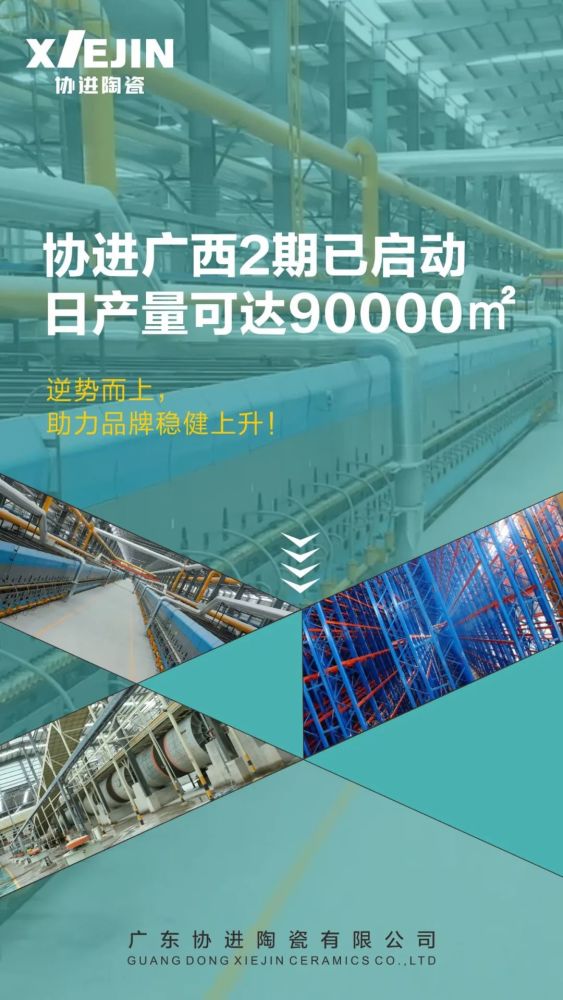 11月9日,协进陶瓷发布,协进广西2期已启动,日产量可达90000㎡逆势而上,助力品牌稳健上升。