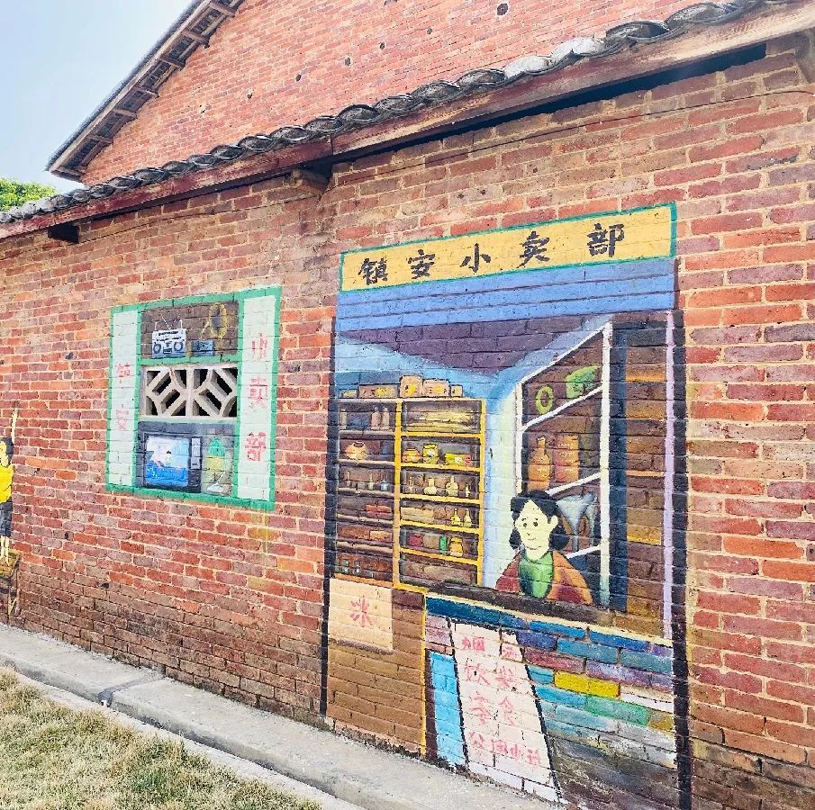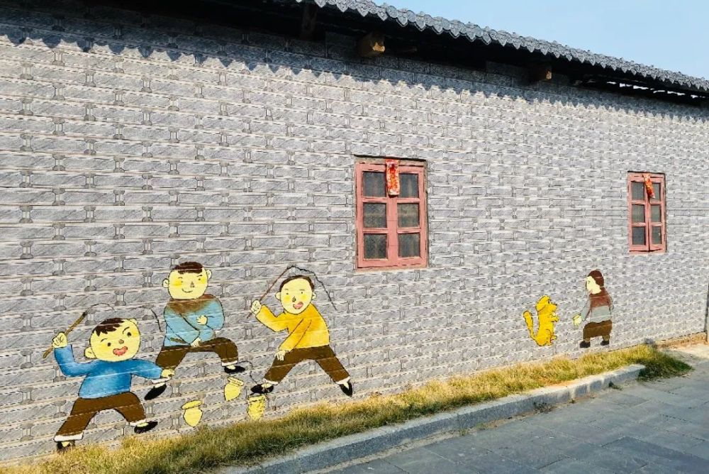 沿着小道走,映入眼帘的是几幅色彩丰富又充满年代感的壁画,有传统的爆米花机,有朴素的小卖部,有村中儿童快乐玩耍的场景,有年代感十足的电影院……一幅幅充满文艺气息的壁画,巧妙地融合了斑驳的墙壁与清新壁画,迸发出浓浓的文艺气息。