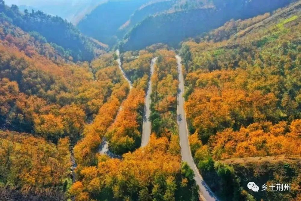 金秋时节,天路景色更加宜人,处处层林尽染,风霜过后,满山遍野的山核桃叶,如同油画,让人沉醉其中。