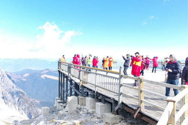 氧气瓶+防寒服+墨镜+手套是登玉龙雪山的必备品