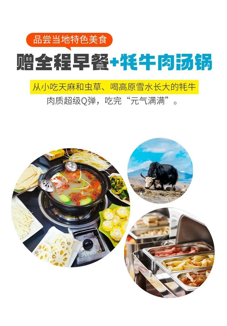 餐食:含早餐、晚餐(牦牛肉汤锅)