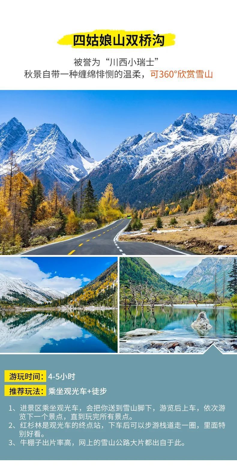 游玩亮点:川西小瑞士“双桥沟”、猫鼻梁观四姑娘山全貌