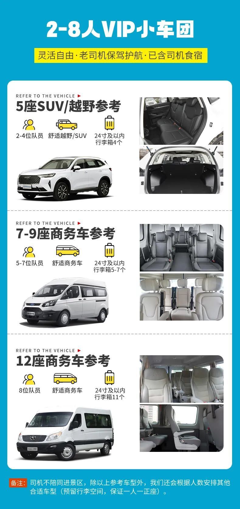 (4)驾驶员会在集合日21:00之前,通知队员次日的出发时间,如果21:00尚未接到驾驶员的通知,请联系客服确认;