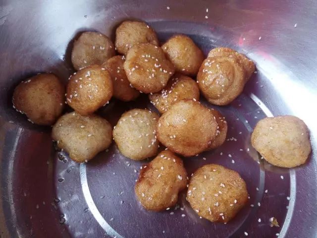 麻圆粑,是多少灌阳县人儿时甜美的回忆。在灌阳,每逢圩日,街头巷尾必有人架锅烧火,熬糖泡麻圆粑。儿童鼻子最灵,老远就能闻到糖泡麻圆的甜香。
