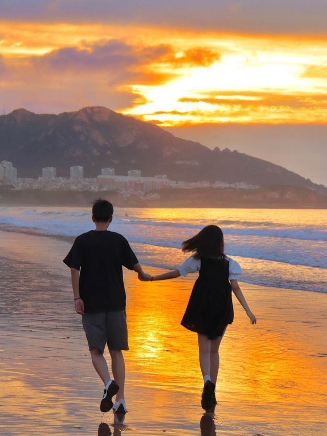 你可以在涨潮时来到东山栈桥,看海浪拍打岸边绽放出无数水花的奇观,也可以在日落时分,到月亮湾,牵着TA的手一起吹着暖暖的海风,看夕阳西下。