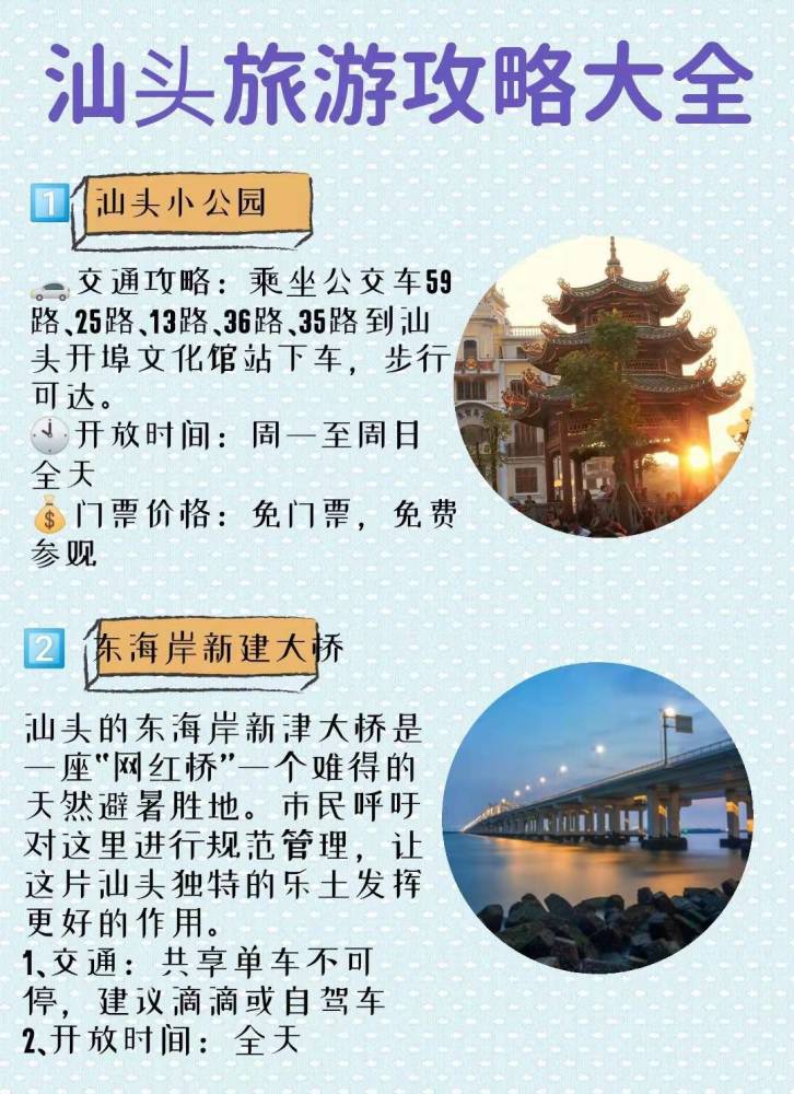 南澳岛、观海长廊、1860文化创意园、海湾湿地公园、欧美城文化小镇、南澳大桥、青云岩风景区