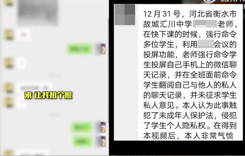 ■?老师要求学生投屏聊天记录,当地回应:已辞退